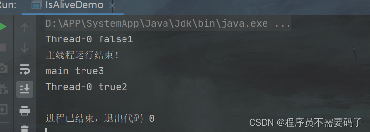 Java中的多线程(二)---线程的使用 一、线程的使用1.终止线程如果我们想在一个线程中终止另一个线程我们一般不使用JDK提供的stop()/destroy() 方法(它们本身也被 JDK 废弃了)。通常的做法是提供一个 boolean 型的终止变量,当这个变量值为 false 时,则终止线程的运行。package 包1;import java.io.IOException;/** 终止线程* */public class StopThread implements Runnable{//设置线程开始/终止标识符