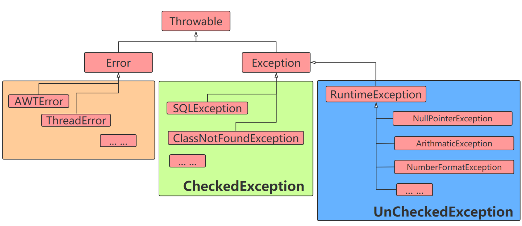 java中的异常处理机制、代码案例、我们该怎样更好的百度我们的异常、Debug调试 目录整体内容大纲:导引问题异常机制本质异常(Exception)的概念异常分类ErrorExceptionRuntimeException运行时异常【示例】NullPointerException异常【示例】ClassCastException异常【示例】ArrayIndexOutOfBoundsException异常【示例】NumberFormatException异常处理异常的方式之一:(捕获异常)try:注意事项catch:...