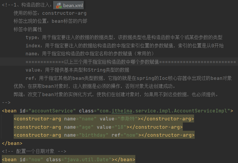 type:用于指定要注入的数据的数据类型,该数据类型也是构造函数中某个或某些参数的类型