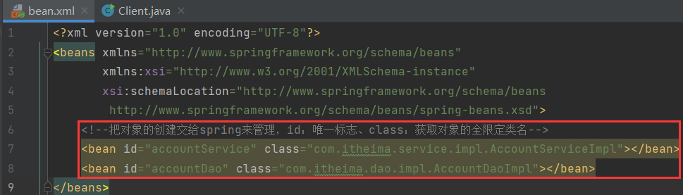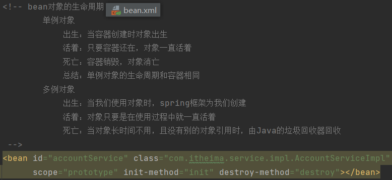 <bean id="accountService" class="com.itheima.service.impl.AccountServiceImpl">