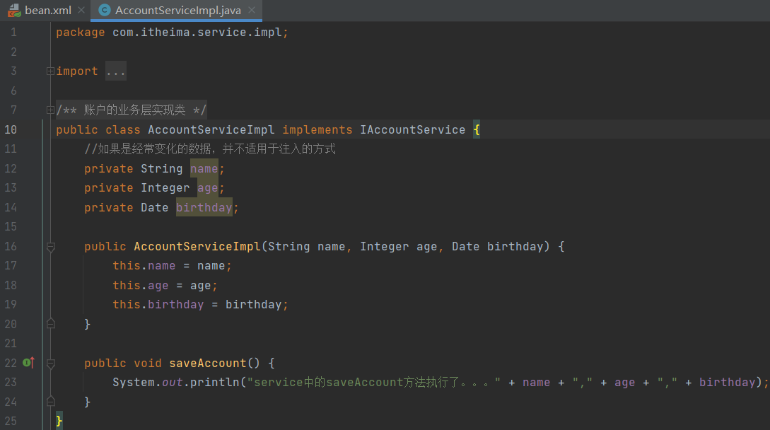 <bean id="accountService2" class="com.itheima.service.impl.AccountServiceImpl2">