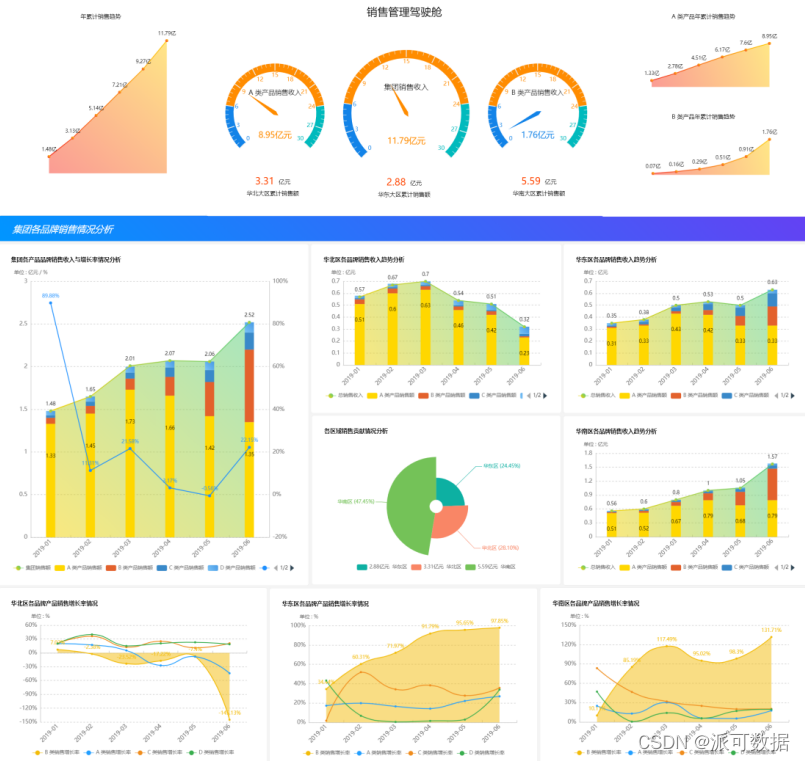 就像是上图中展示的管理驾驶舱,这些关键指标才是让管理决策人员满意的数据报表。