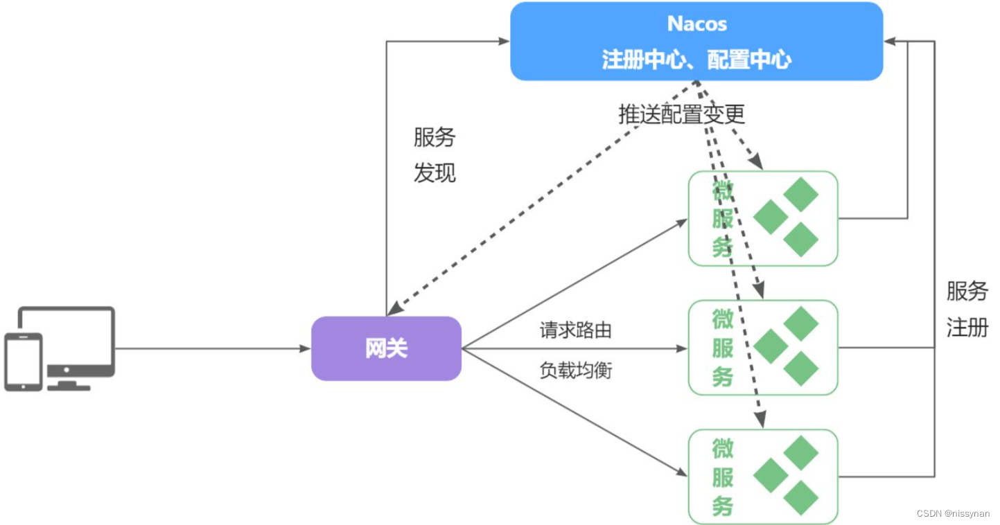 用户服务商品服务购物车服务交易服务支付服务请求不同数据时要访问不同的入口,需要维护多个入口地址,麻烦前端无法调用nacos,无法实时更新服务列表单体架构时我们只需要完成一次用户登录、身份校验,就可以在所有业务中获取到用户信息。每个微服务都需要编写登录校验、用户信息获取的功能吗?当微服务之间调用时,该如何传递用户信息?不要着急,这些问题都可以在本文中找到答案,我们会通过网关技术解决上述问题。第一章:网关路由,解决前端请求入口的问题。