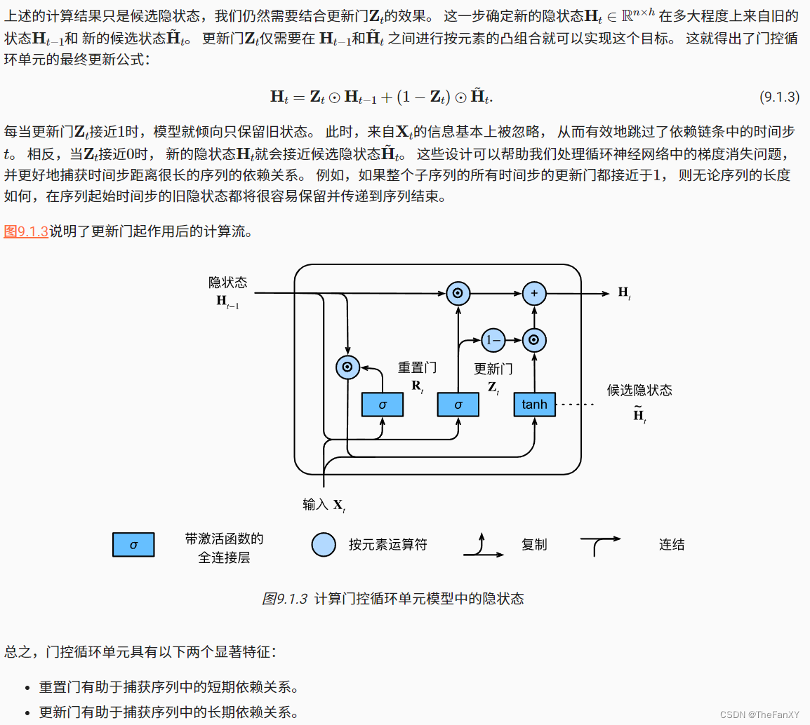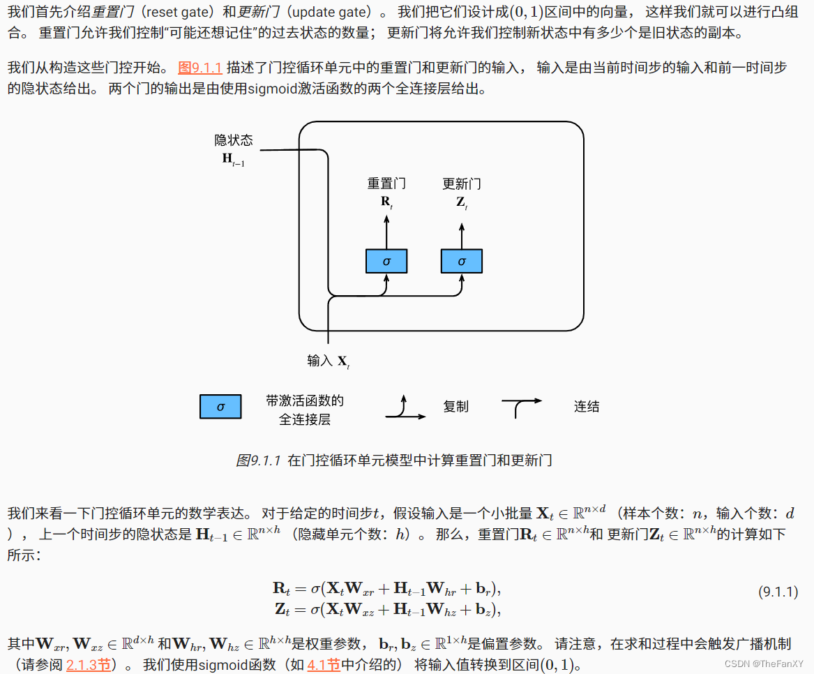 现在我们准备定义门控循环单元模型, 模型的架构与基本的循环神经网络单元是相同的, 只是权重更新公式更为复杂。