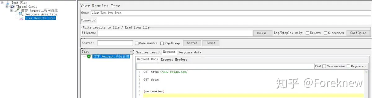6.点击“Start”快捷按钮执行测试,可以在“View Results Tree”中查看测试结果。
