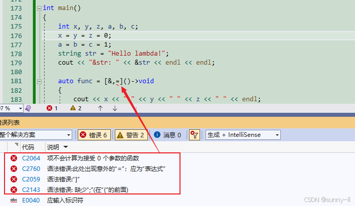 [&, x]表示x使用 传值捕捉,其他变量使用 引用捕捉;[=, &str]表示str使用 引用捕捉,其他变量使用 传值捕捉