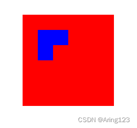what?黑色的?,连白色的背景也没了?因为现在是在同一个canvas中操作的,这一层的东西都会受影响,有点像是Photoshop中的图层概念。那只想让他抠掉蓝色的那一层怎么办?在画好红色的矩形后调用saveLayer()方法来保存当前图层和新建一个图层,然后再画一个蓝色的矩形,再抠出中间的位置,上代码: