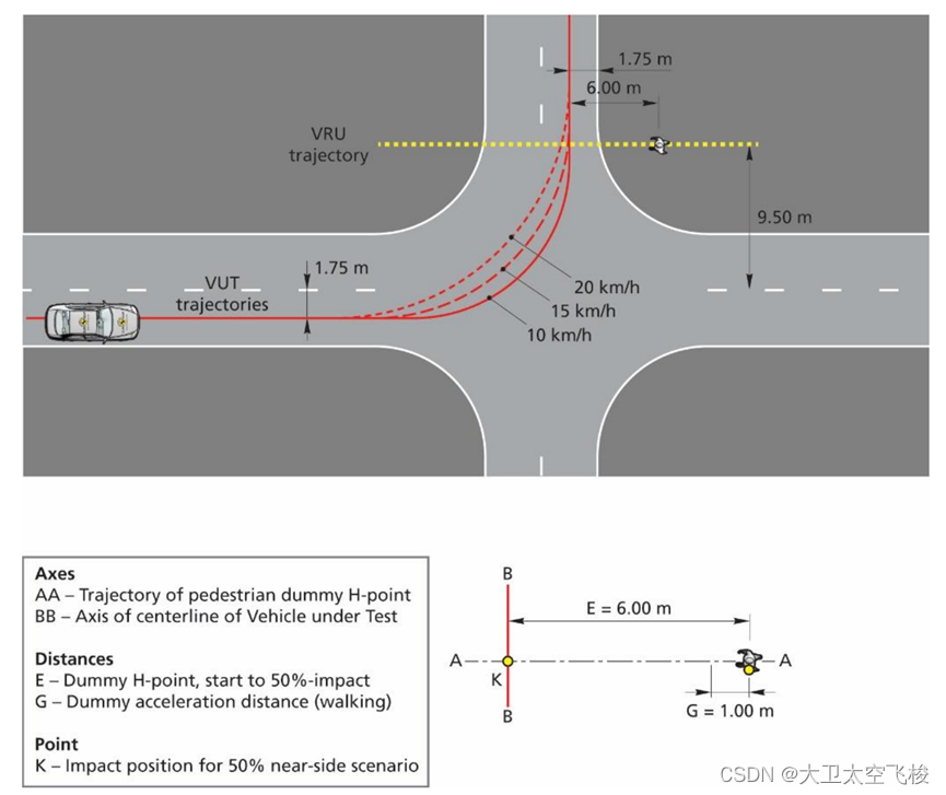 2. 行人出现:AEB 系统可以感知到 0.5m 高的行人进入车辆前方的区域,并表明是否会与行人相撞,从而尽可能减少事故伤害。