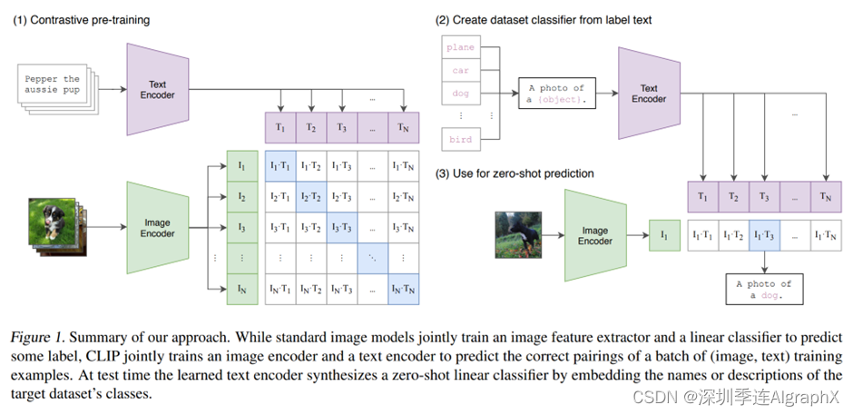 到底他是怎么去做这个zero的推理的,我们现在直接就来看文章的图一,也就是CLIP的这个模型总览图。