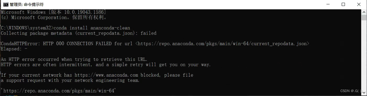 Collecting package metadata (current _repodata. json) : failed CondaHTTPError: HTTP 000 CONNECTION F Collecting package metadata (current _repodata. json) : failedCondaHTTPError: HTTP 000 CONNECTION FAILED for url (https://repo. anaconda. com/pkgs/main/win-64/