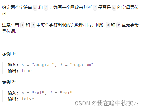 代码随想录算法训练营|DAY6|242.有效字母移位|349.两个数组的交集|202.快乐数|1.两数之和 我们只需要判断字母是不是一样,比如"rat"和“car”,我们可以把字母按照字符串排列,rat就变成"atr",car就变成"acr"。这道题的重点是判断有没有两个数组中有没有一样的数字,且输出是唯一的。因为set在添加元素的时候自动会帮我们做个去重,相同元素就不再重复添加了。然后重复这个过程直到这个数变为 1,也可能是 无限循环 但始终变不到 1。对于一个正整数,每一次将该数替换为它每个位置上的数字的平方和。如果这个过程 结果为 1,那么这个数就是快乐数。编写一个算法来判断一个数 n 是不是快乐数。