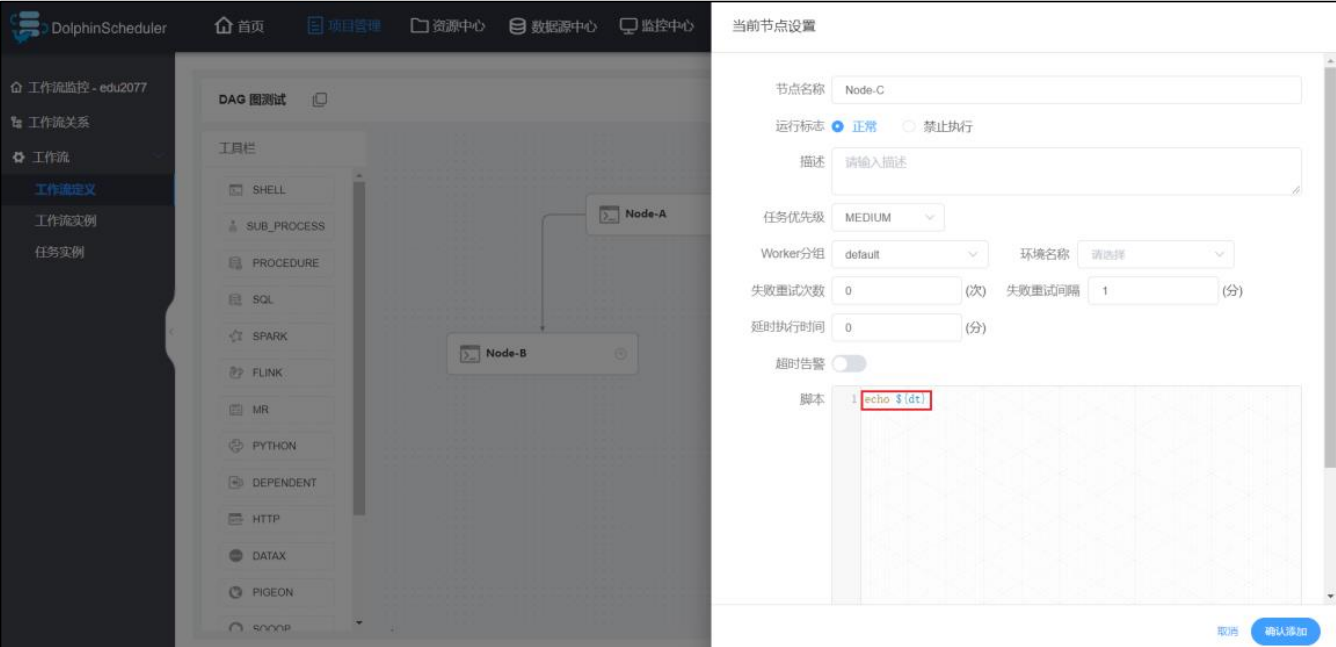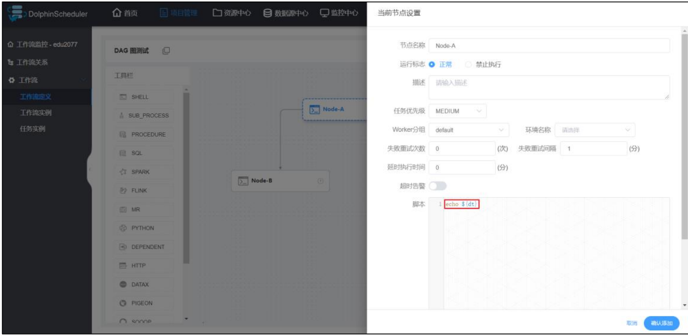 DolphinScheduler 支持对任务节点进行灵活的传参,任务节点可通过${参数名}引用参数值。
