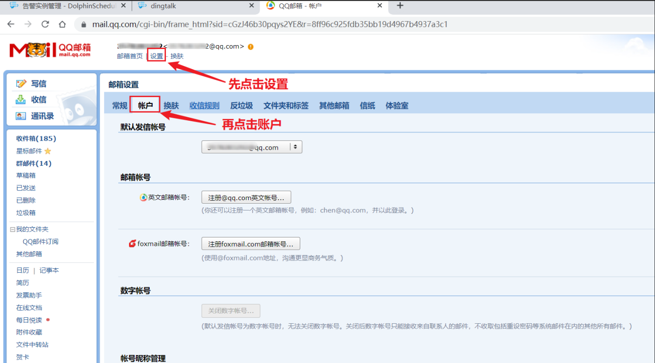 如需使用 DolphinScheduler 的电子邮件告警通知功能,需要准备一个电子邮箱账号,并启用 SMTP 服务。此处以 QQ 邮箱为例。