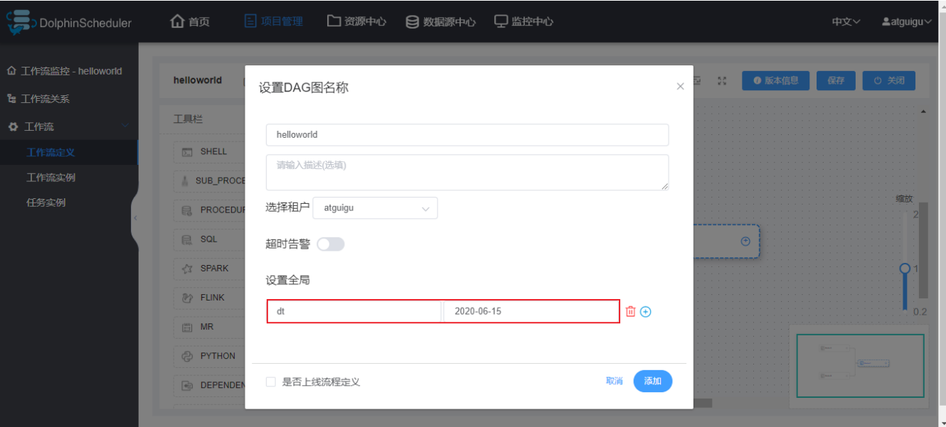 全局参数是指针对整个工作流的所有任务节点都有效的参数。