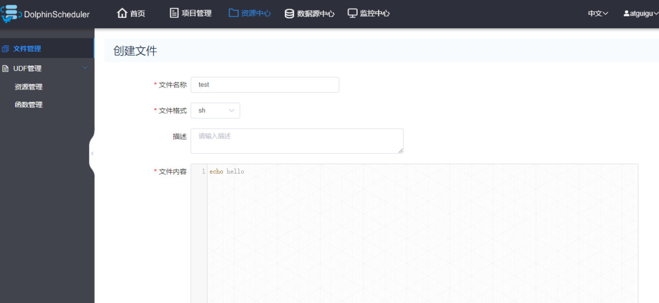 有些任务需要引用一些额外的资源,例如 MR、Spark 等任务须引用 jar 包,Shell 任务需要引用其他脚本等。DolphinScheduler 提供了资源中心来对这些资源进行统一管理。资源中心存储系统可选择本地文件系统或者 HDFS 等。资源中心除了提供文件资源管理功能,还提供了 Hive 自定义函数管理的功能。