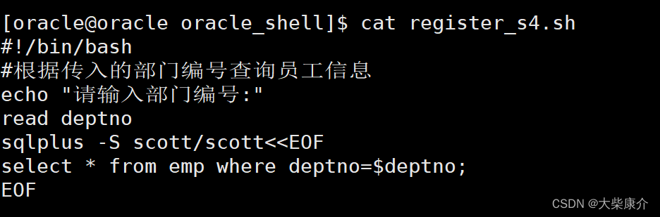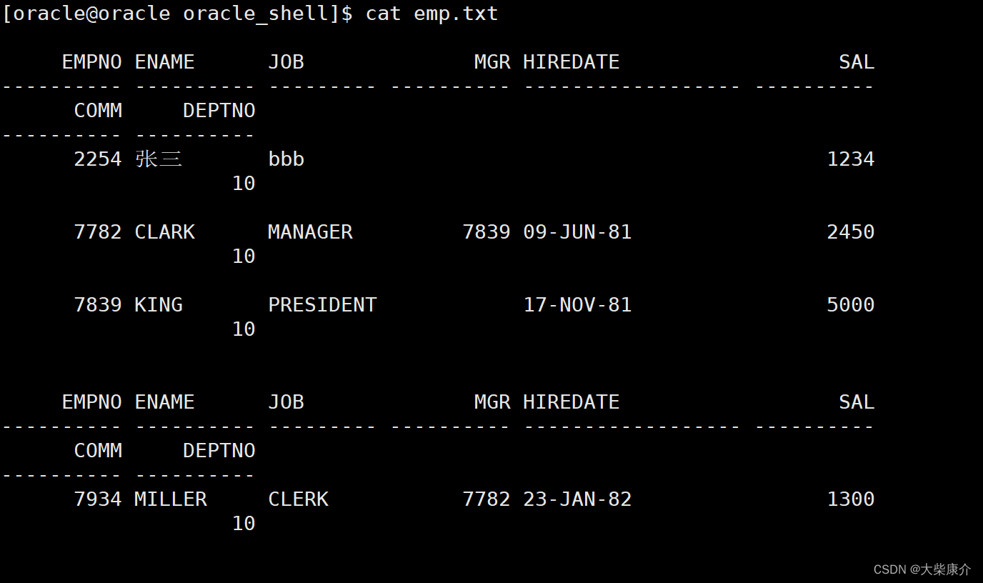 示例2:编写shell输出dept表的内容,要求字段与字段间用','隔开