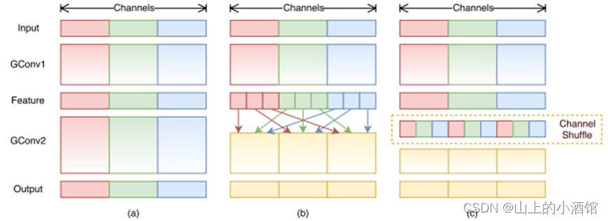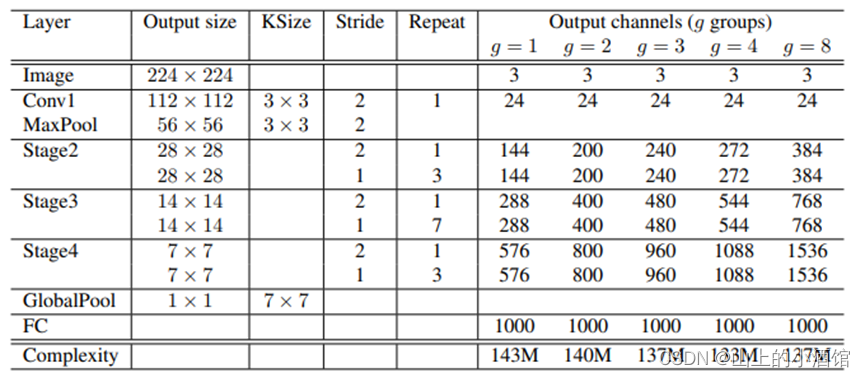 2处将组卷积改回普通1*1卷积,遵循第二条2,较少组数g。