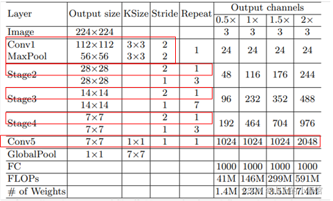 根据以上四条原则, shufflenet_v2对 shufflenet_v1进行了一系列改进,网络架构如下图: