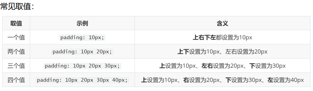 单方向设置:padding-left padding-right padding-top padding-bottom