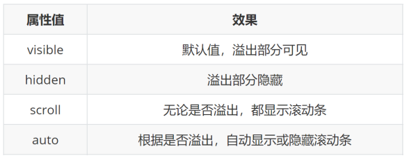 溢出部分显示效果 overflow : visible / hidden / scroll / auto