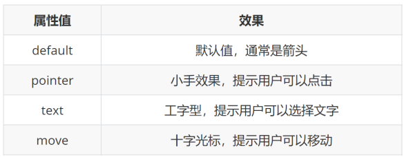 鼠标光标在元素上显示的类型