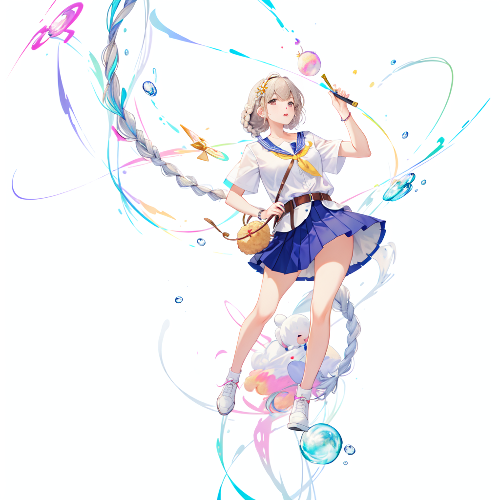 Masterpiece, best quality, 1 girl, short skirt, braided braid, short shirt, pure white background