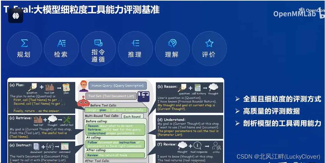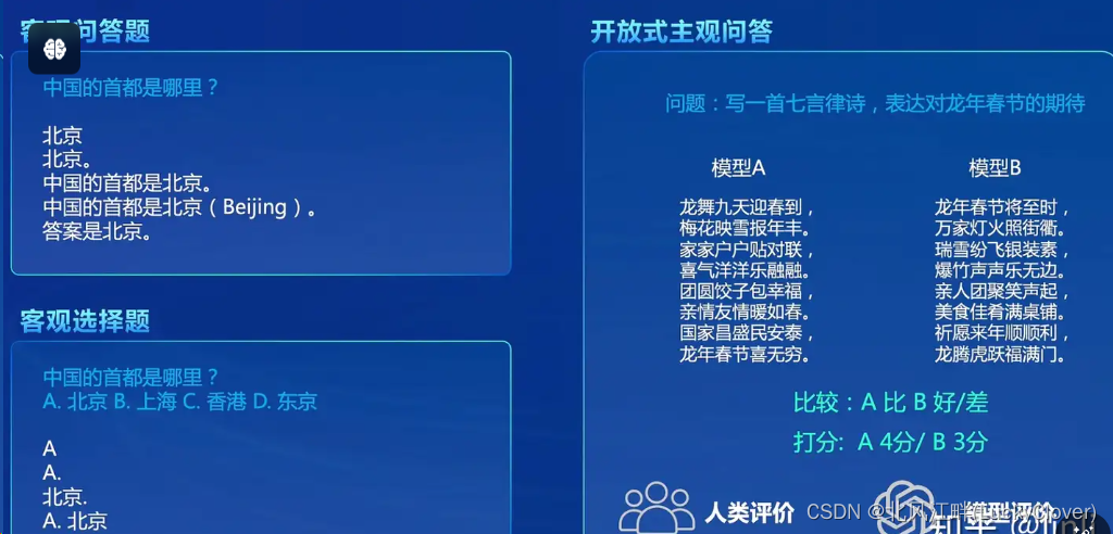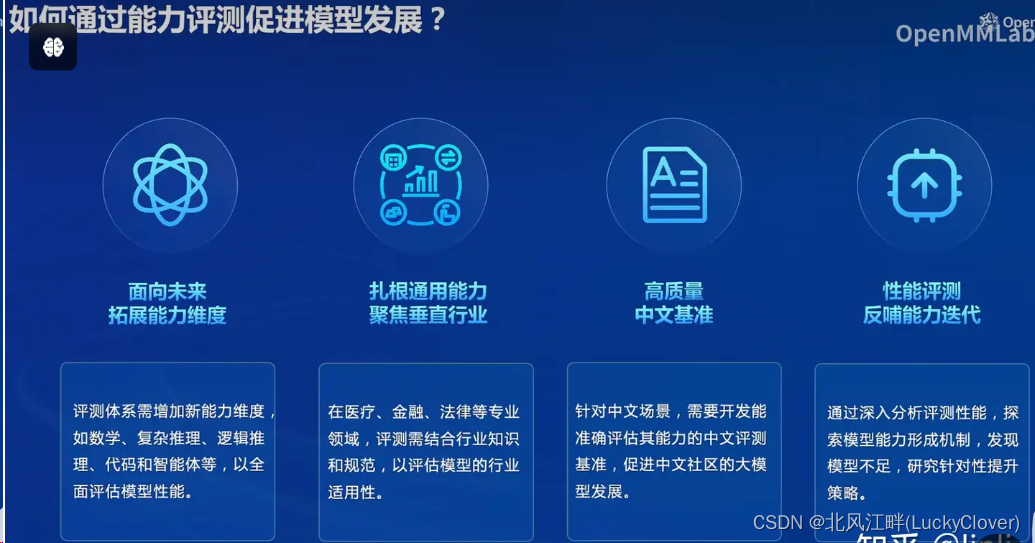 - 全面性:大模型应用场景千变万化;模型能力演进迅速;如何设计和构造可扩展的能力维度体系。