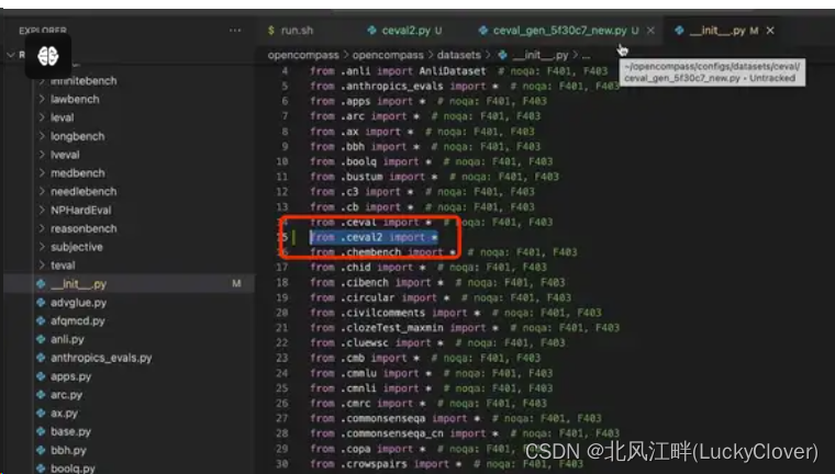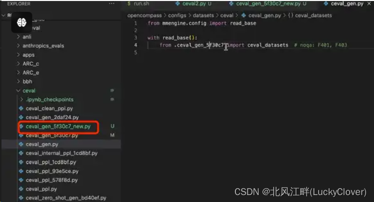 - 在 opencompass 下的 datasets中新建一个 py 文件