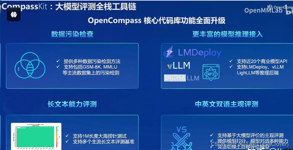 - 数据污染:海量语料不可避免带来评测集污染;需要可靠的污染检测技术;如何设计可动态更新的高质量评测基准。