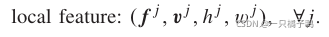 换句话说,fj是X中的第j个特征,在某些视图中是局部特征。让vj∈ R3表示与fj的视图关联的虚拟相机的单位视点向量。表示摄影机在三维空间中的位置。此外,让hj,wj表示视图中fj的归一化空间索引(即从[1,H]和[1,W]归一化为[0,1])。然后,与fj关联的整个信息被描述为一个元组: