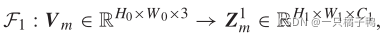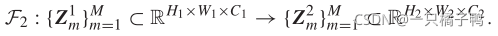 对于m = 1,···,M,其中Z1m为Vm上输出的C1通道特征张量。所有Z1m输入到F2,并转换为一组对应感知的特征张量: