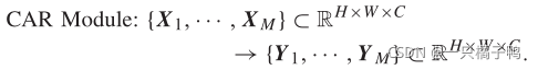 CAR网络的关键组件是CAR模块,该模块旨在通过同时利用视图内和视图间的对应关系来增强F1的卷积视图特征。CAR模块接受来自剩余块的特征张量X1、··、Xm作为输入,并输出与输入大小相同的对应感知特征:
