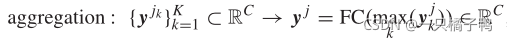 表示元素乘积。可以看出,yjK编码了局部语义特征fj、fjk以及该对应对的空间分布关系。随后,增强特征{yjk}Kk=1被聚合为单个对应感知特征yj,如下所示: