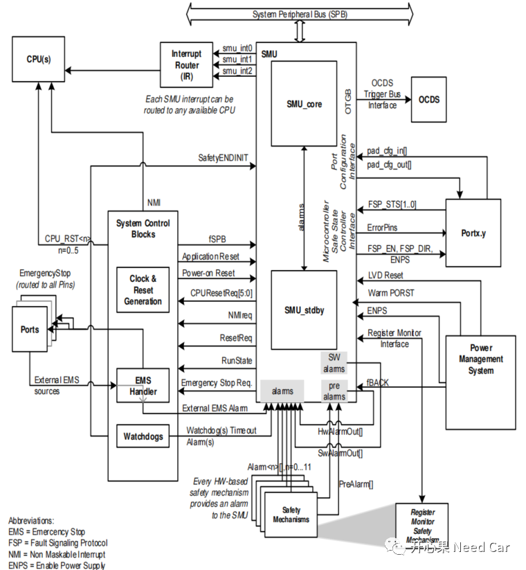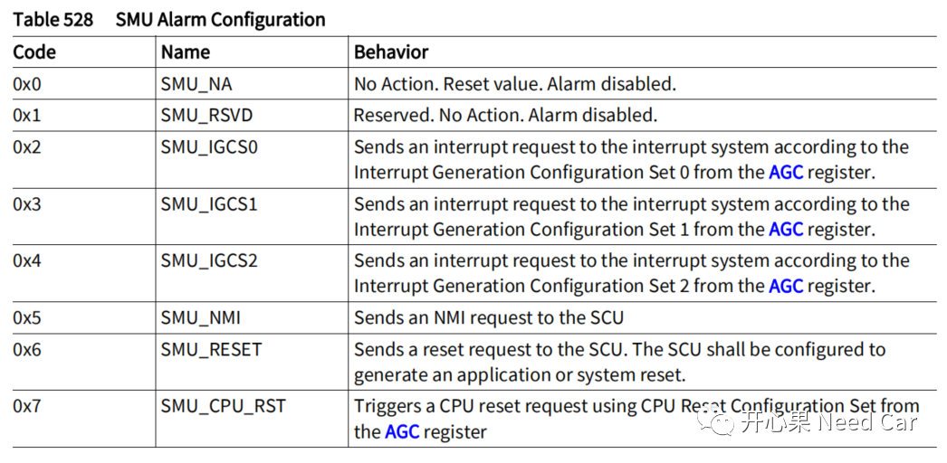 SMU_CORE侧重处理硬件监控的alarm以及Safety相关的Alarm,SMU_STDBY侧重处理clock alarm、电源alarm,以及温度相关的alarm。