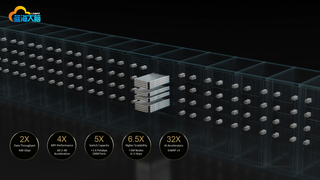 GH200是英伟达在 COMPUTEX 2023展会上推出的最新超级计算机,最多可以放置256个GPU,适用于超大型AI模型的部署。相比之前的DGX服务器,GH200提供线性拓展方式和更高的GPU共享内存编程模型,可通过NVLink高速访问144TB内存,是上一代DGX的500倍。其架构提供的NVLink带宽是上一代的48倍,使得千亿或万亿参数以上的大模型能够在一台DGX内放置,进一步提高模型效率和多模态模型的开发进程。