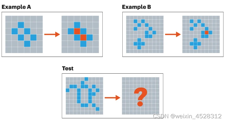 一种更高级的AI智力测试:这种测试要求AI模型根据例子中显示的模式来预测输入色块如何转换成输出格点。