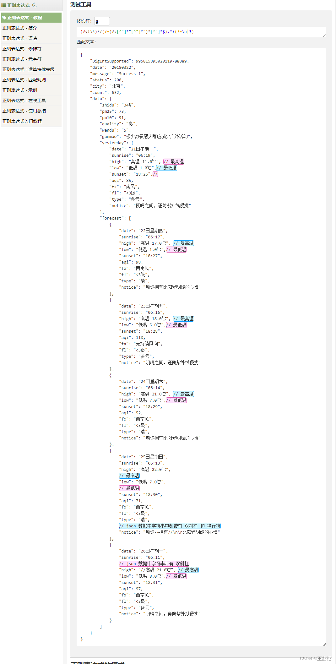 Python中json.load() json.loads()加载json数据,JSON数据带有// 单行注释 核心:完整保留 双引号 内的,处理双引号外的 注释内容(双引号内的为字符部分,双引号外的为非字符部分)结构: 以 双斜杠 开头 换行符 结尾 及 中间注释内容部分。结构:字段名 及 字符串 都是以 " " 双引号 包裹。难点:如果字符串中也有这样的内容,仅仅考虑这个特征 将。JSON文件中的数据(带有//单行注释)显示【正则表达式】提取到的内容。