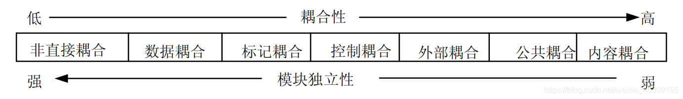 模块之间的连接越紧密,联系越多,耦 合性就越高