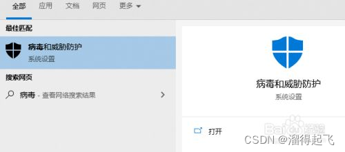 1.按下win键搜索:病毒与防护