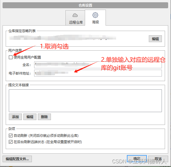 也可以使用sourcetree工具来对每一个本地仓库使用不同的git账号来登录。用sourcetree打开一个仓库后,点击设置,在设置中单独对该仓库设置对应的远程仓库git账号: