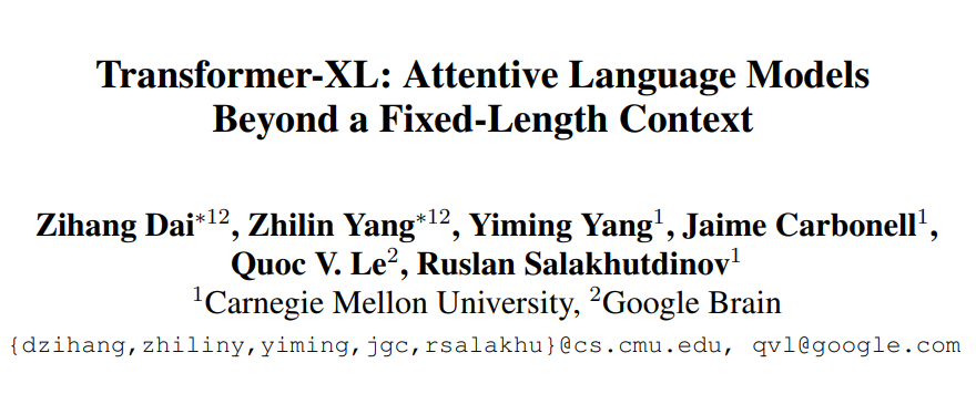 【ACL 2019】超越固定长度上下文的注意力语言模型 在自然语言处理任务中,Transformer具备学习数据长期依赖的潜力,但是受到固定长度上下文的限制。为此,本文提出了一种新的神经网络架构Transformer-XL,该网络结构能够在不破坏时间一致性的情况下,学习到超越固定长度的依赖性。该架构包括一个片段级的循环机制和一个新的位置编码策略。该方法不仅能够捕获长期的依赖关系,还解决了上下文碎片化的问题。