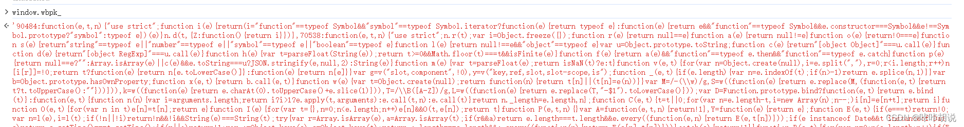 但是这里有个问题,在控制台输出的是一个字符串,如果直接复制粘贴到Python里面运行会报错,原因是控制台里面有很多转义符号“\”,如果我们一个个去替换,就很麻烦,而且会容易出错。针对这种情况,我找到一种笨方法,就是通过js直接把内容保存在文本里面下载到本地,下面代码是在网上找到,window.wbpk_是要保存的内容字符串。js逆向经常会遇到webpack,需要进行扣除模块,根据key手动搜索太慢,网上有个自动扣代码的脚本,玩逆向的小伙伴应该都很熟悉了。打开保存的文件,可以发现这里的转义已经正常了。