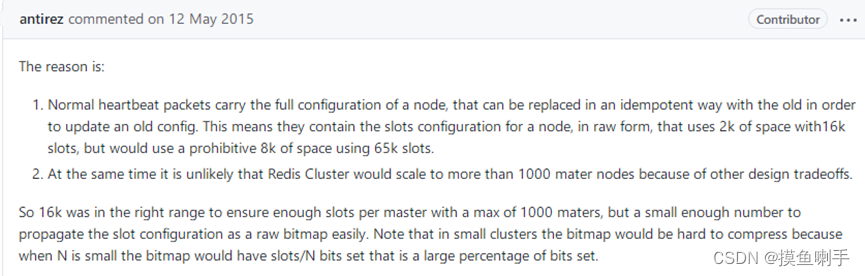 为什么槽的范围是0 ~16383,也就是说槽的个数在16384个?redis的作者在github上有个回答:https://github.com/redis/redis/issues/2576