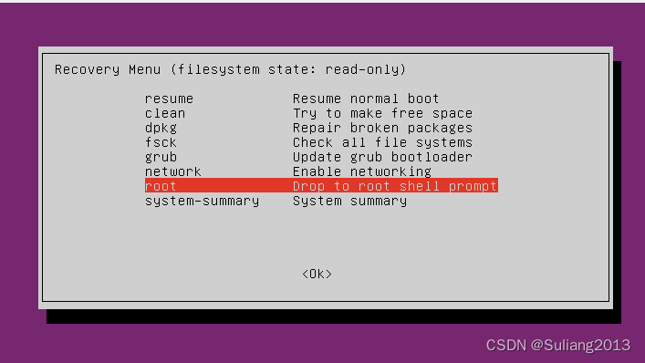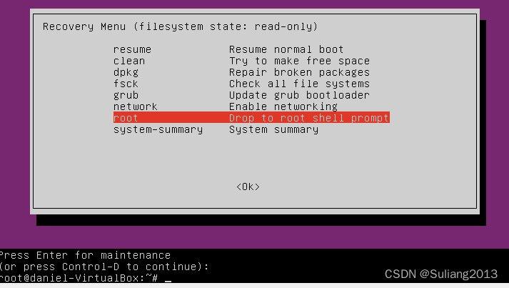方法2:Recovery mode下进入Root账户,删除大体积文件,然后正常启动