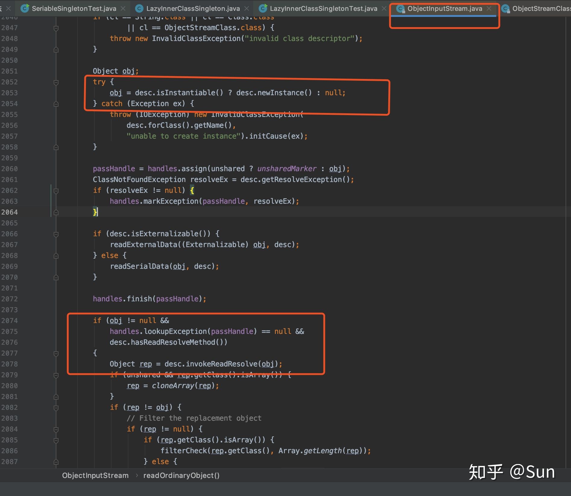 singleton1 = (HungrySingleton) ois.readObject();// 这句代码是我们的入手点