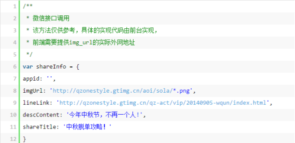 旧微信会使用WeixinJSBridge来声明分享的缩略图、标题、正文等,比较方便。例如: