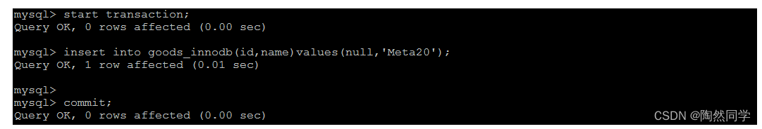 start transaction; insert into goods_innodb(id,name)values(null,'Meta20'); commit;