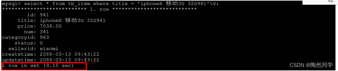 select * from tb_item where title = 'iphoneX 移动3G 32G941';