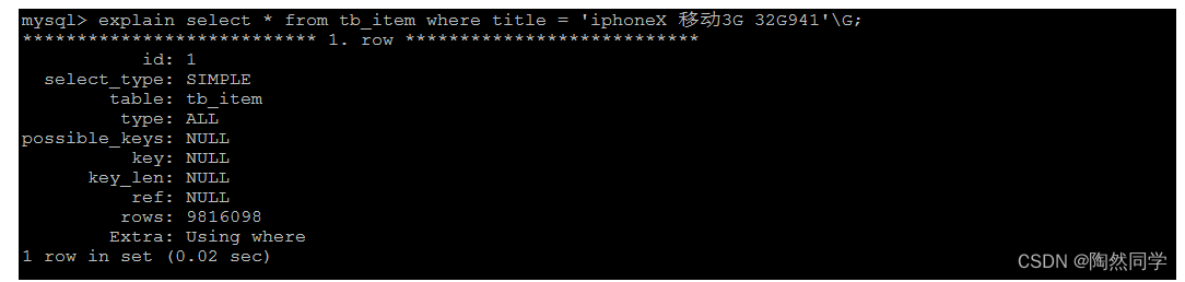 create index idx_item_title on tb_item(title);