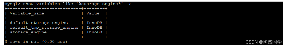 show variables like '%storage_engine%' ;